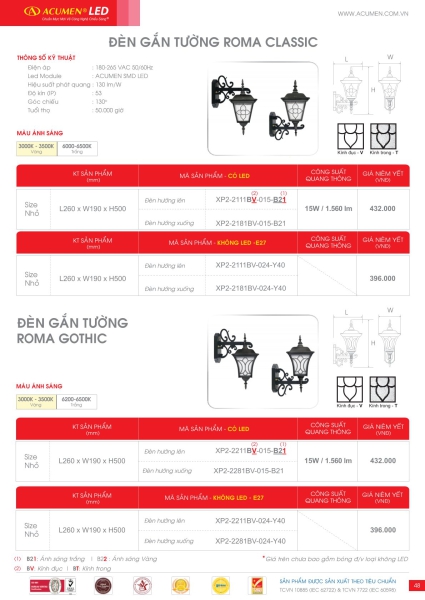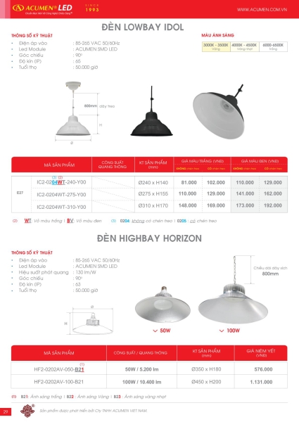 Chọn đèn theo Catalog